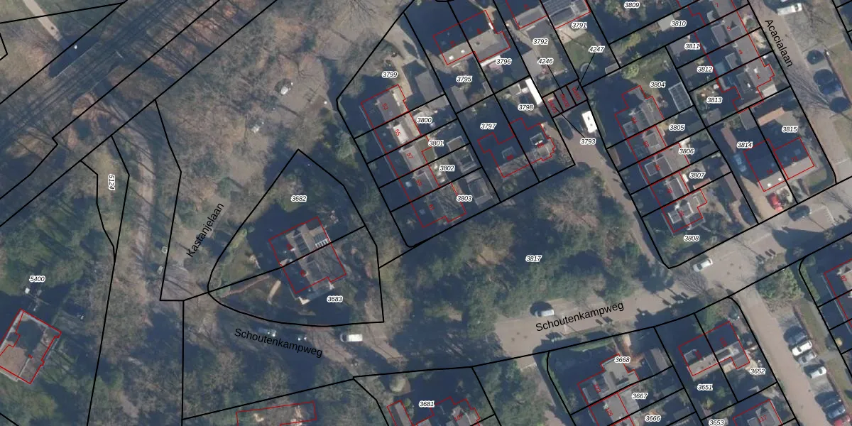 Kastanjelaan 61 is gelegen op kadastraal perceel SOE00D3803. Deze kadastrale aanduiding is uniek en wordt gebruikt door het Kadaster om eigendomsrechten en andere zakelijke rechten vast te leggen. Het perceel maakt onderdeel uit van de kadastrale gemeente Soest.