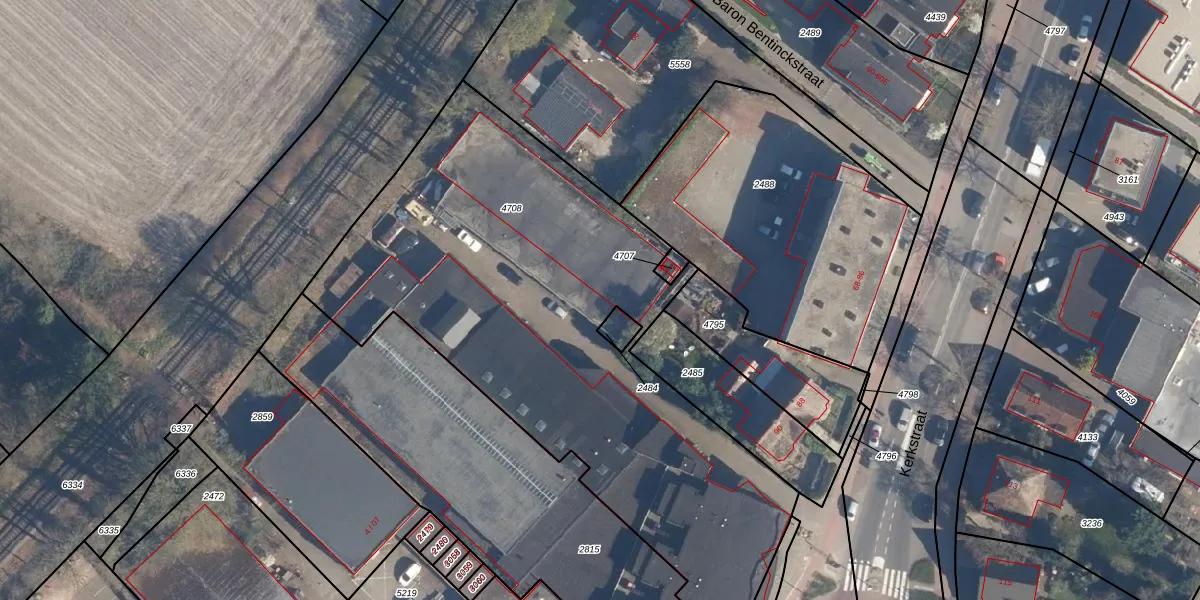 Het perceel waarop Kerkstraat 100 staat heeft een oppervlakte van 2851 m². Dit is een zeer groot perceel. De perceeloppervlakte wordt geregistreerd door het Kadaster. Gedetailleerde informatie over de maten van dit perceel kunt u vinden in het rapport Kadastrale kaart met maatvoering van Kerkstraat 100.