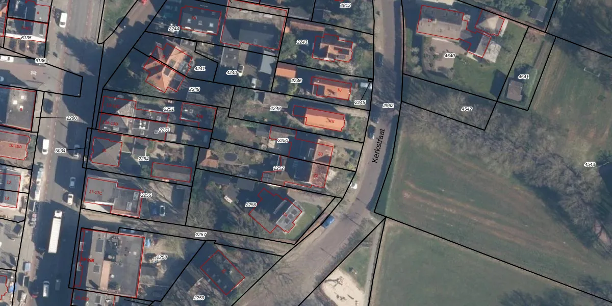 Het perceel waarop Kerkstraat 20 staat heeft een oppervlakte van 450 m². Dit is een groot perceel. De perceeloppervlakte wordt geregistreerd door het Kadaster. Gedetailleerde informatie over de maten van dit perceel kunt u vinden in het rapport Kadastrale kaart met maatvoering van Kerkstraat 20.