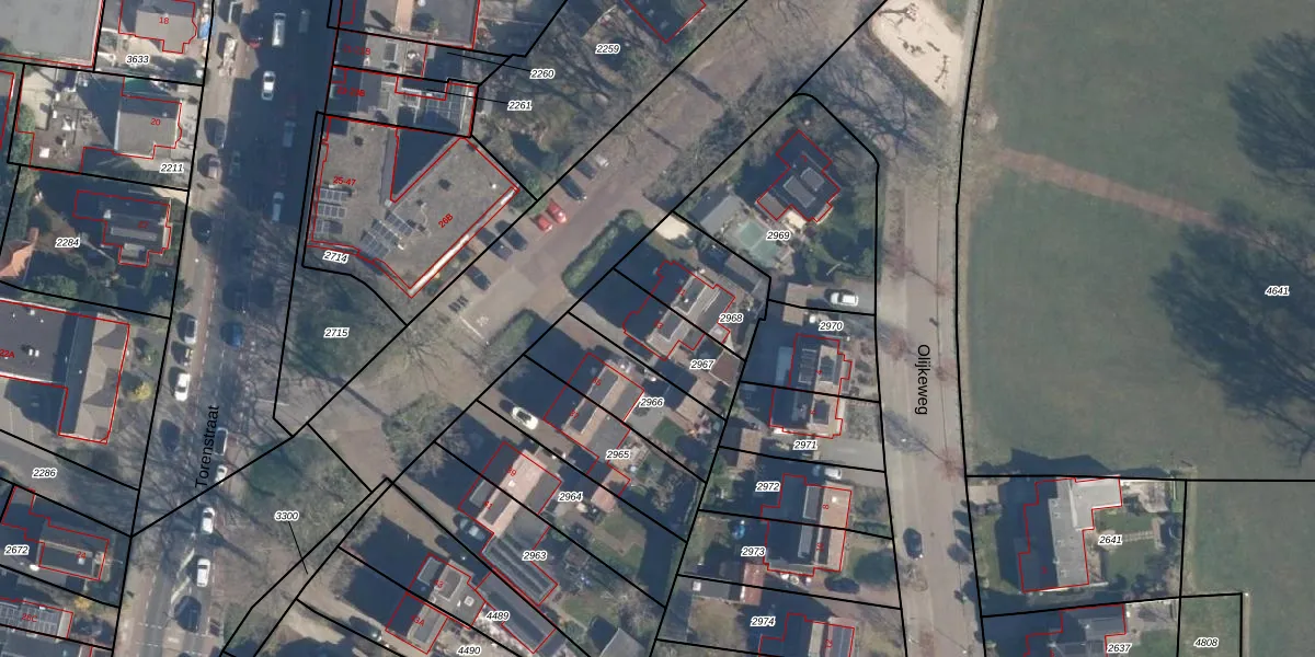 Gebruik de zoekbalk of klik op een perceel voor informatie over de adressen binnen dit perceel.