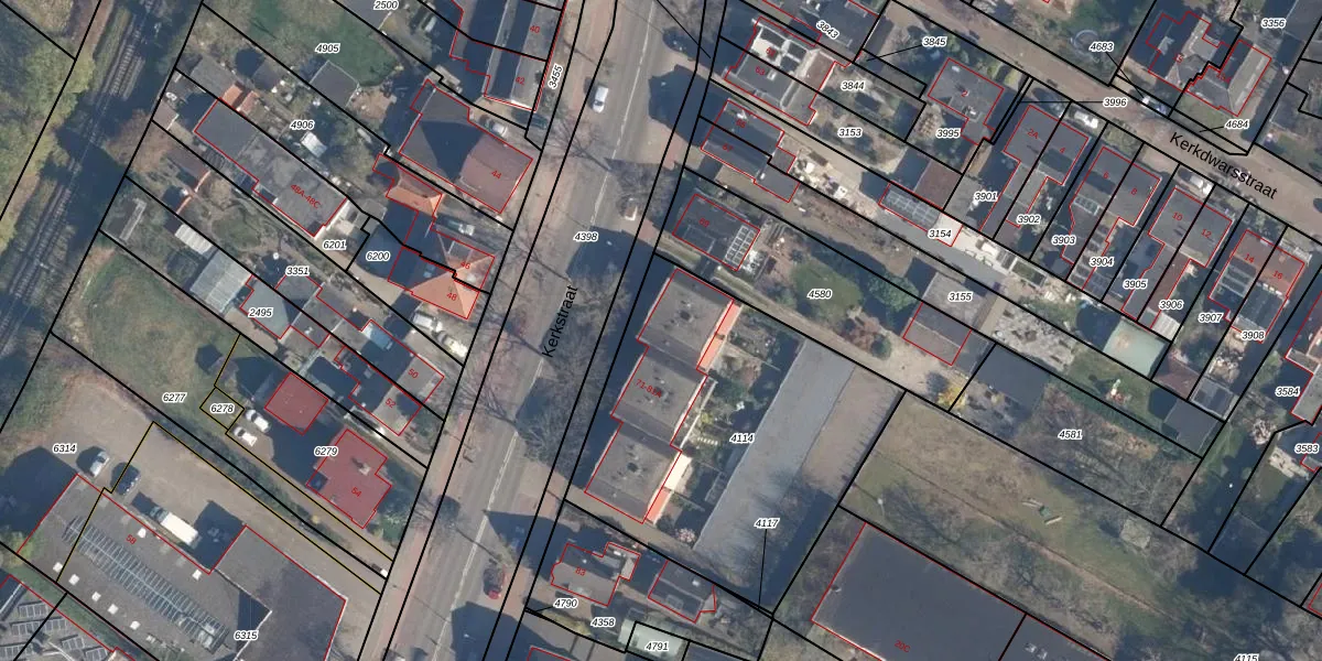 Het perceel waarop Kerkstraat 71-A staat heeft een oppervlakte van 1560 m². Dit is een zeer groot perceel. De perceeloppervlakte wordt geregistreerd door het Kadaster. Gedetailleerde informatie over de maten van dit perceel kunt u vinden in het rapport Kadastrale kaart met maatvoering van Kerkstraat 71-A.