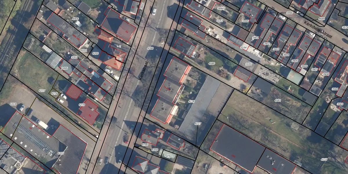 Het perceel waarop Kerkstraat 77 staat heeft een oppervlakte van 1560 m². Dit is een zeer groot perceel. De perceeloppervlakte wordt geregistreerd door het Kadaster. Gedetailleerde informatie over de maten van dit perceel kunt u vinden in het rapport Kadastrale kaart met maatvoering van Kerkstraat 77.