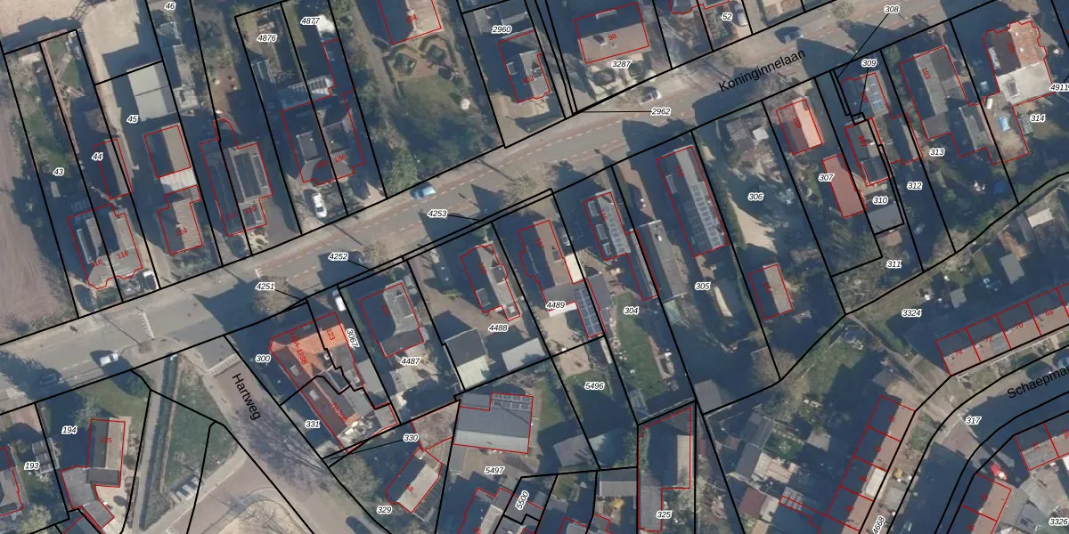 Het perceel waarop Koninginnelaan 117 staat heeft een oppervlakte van 330 m². Dit is een groot perceel. De perceeloppervlakte wordt geregistreerd door het Kadaster. Gedetailleerde informatie over de maten van dit perceel kunt u vinden in het rapport Kadastrale kaart met maatvoering van Koninginnelaan 117.