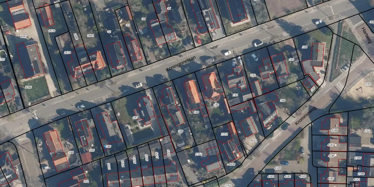 Gebruik de zoekbalk of klik op een perceel voor informatie over de adressen binnen dit perceel.