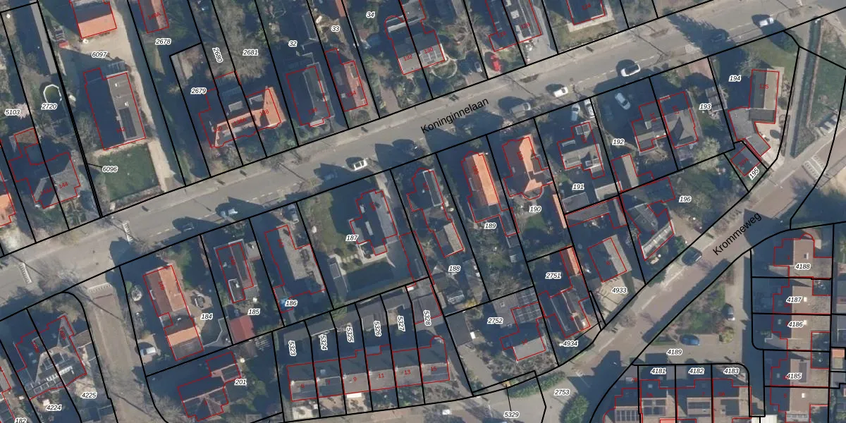 Het perceel waarop Koninginnelaan 137 staat heeft een oppervlakte van 448 m². Dit is een groot perceel. De perceeloppervlakte wordt geregistreerd door het Kadaster. Gedetailleerde informatie over de maten van dit perceel kunt u vinden in het rapport Kadastrale kaart met maatvoering van Koninginnelaan 137.