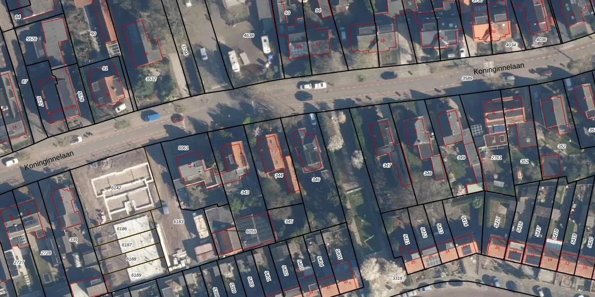 Het perceel waarop Koninginnelaan 73 staat heeft een oppervlakte van 477 m². Dit is een groot perceel. De perceeloppervlakte wordt geregistreerd door het Kadaster. Gedetailleerde informatie over de maten van dit perceel kunt u vinden in het rapport Kadastrale kaart met maatvoering van Koninginnelaan 73.