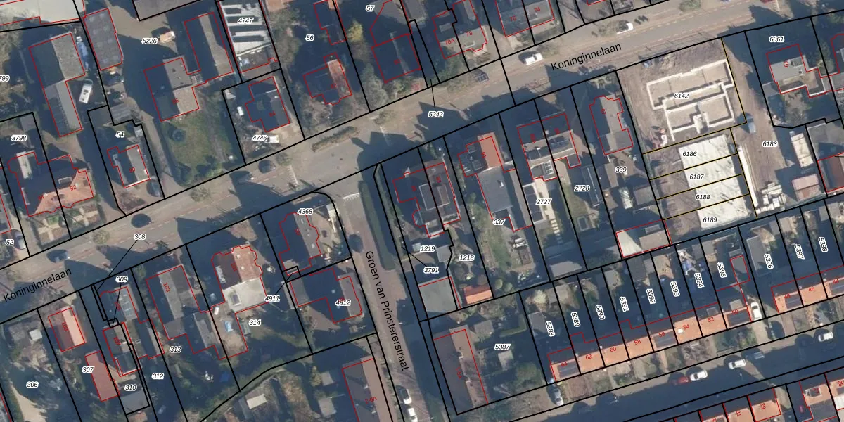 Het perceel waarop Koninginnelaan 95 staat heeft een oppervlakte van 362 m². Dit is een groot perceel. De perceeloppervlakte wordt geregistreerd door het Kadaster. Gedetailleerde informatie over de maten van dit perceel kunt u vinden in het rapport Kadastrale kaart met maatvoering van Koninginnelaan 95.