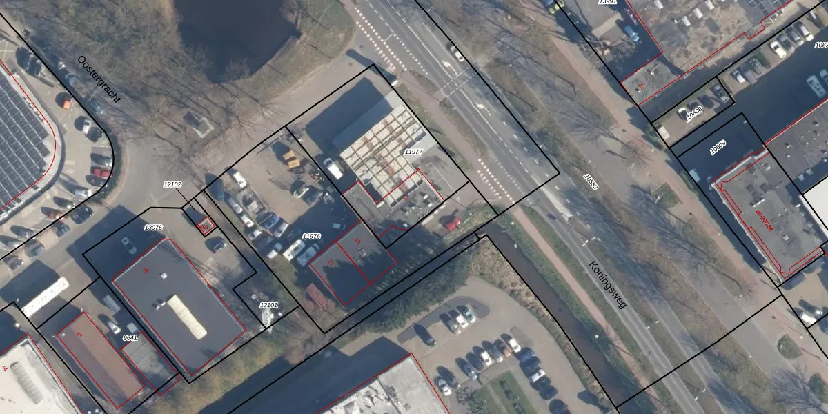 Het perceel waarop Koningsweg 17 staat heeft een oppervlakte van 970 m². Dit is een groot perceel. De perceeloppervlakte wordt geregistreerd door het Kadaster. Gedetailleerde informatie over de maten van dit perceel kunt u vinden in het rapport Kadastrale kaart met maatvoering van Koningsweg 17.