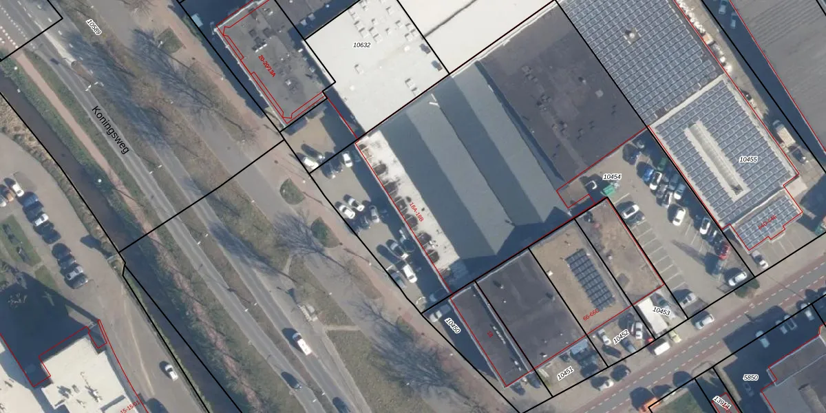 Het perceel waarop Koningsweg 18-B staat heeft een oppervlakte van 3916 m². Dit is een zeer groot perceel. De perceeloppervlakte wordt geregistreerd door het Kadaster. Gedetailleerde informatie over de maten van dit perceel kunt u vinden in het rapport Kadastrale kaart met maatvoering van Koningsweg 18-B.