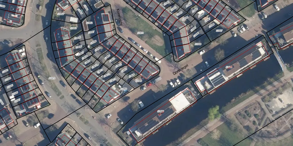 Gebruik de zoekbalk of klik op een perceel voor informatie over de adressen binnen dit perceel.