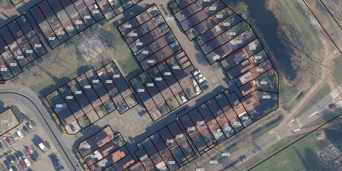 Kornet 21 is gelegen op kadastraal perceel SOE00G8023. Deze kadastrale aanduiding is uniek en wordt gebruikt door het Kadaster om eigendomsrechten en andere zakelijke rechten vast te leggen. Het perceel maakt onderdeel uit van de kadastrale gemeente Soest.