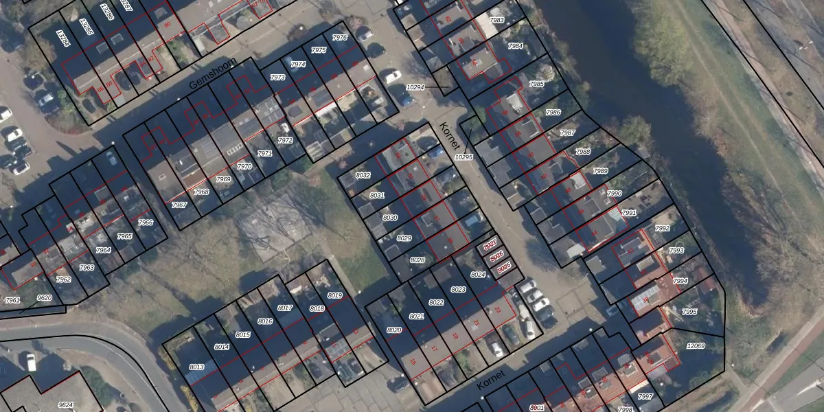 Het perceel waarop Kornet 29 staat heeft een oppervlakte van 156 m². Dit is een middelgroot perceel. De perceeloppervlakte wordt geregistreerd door het Kadaster. Gedetailleerde informatie over de maten van dit perceel kunt u vinden in het rapport Kadastrale kaart met maatvoering van Kornet 29.