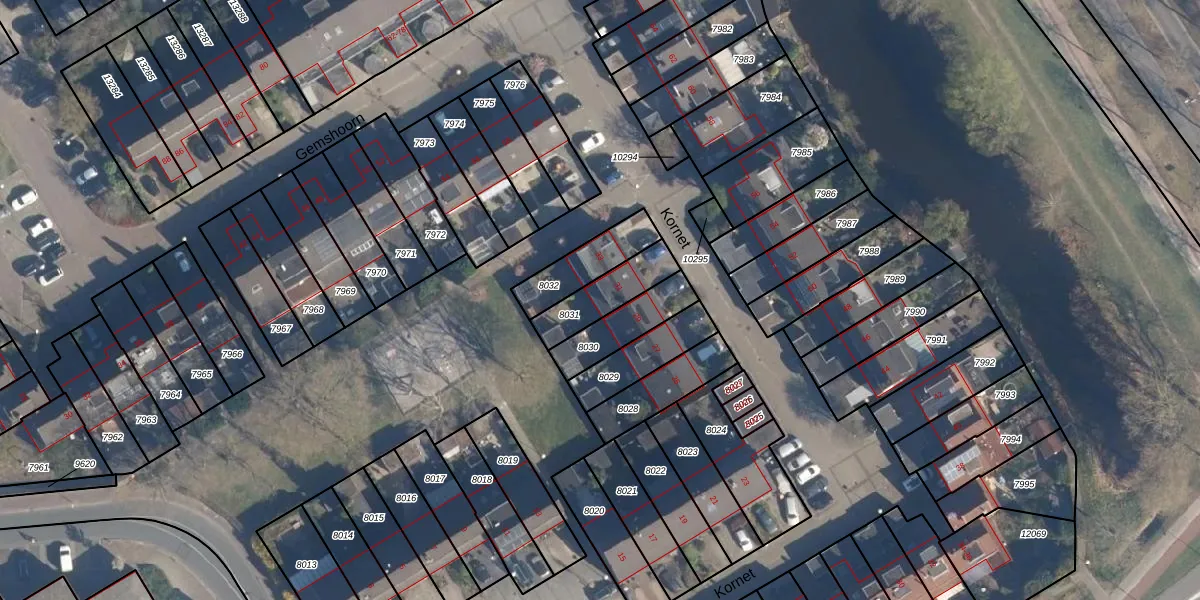 Het perceel waarop Kornet 31 staat heeft een oppervlakte van 156 m². Dit is een middelgroot perceel. De perceeloppervlakte wordt geregistreerd door het Kadaster. Gedetailleerde informatie over de maten van dit perceel kunt u vinden in het rapport Kadastrale kaart met maatvoering van Kornet 31.