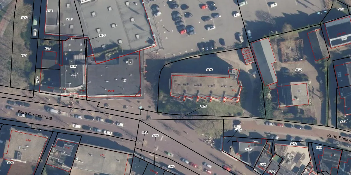 Het perceel waarop Korte Brinkweg 13 staat heeft een oppervlakte van 2040 m². Dit is een zeer groot perceel. De perceeloppervlakte wordt geregistreerd door het Kadaster. Gedetailleerde informatie over de maten van dit perceel kunt u vinden in het rapport Kadastrale kaart met maatvoering van Korte Brinkweg 13.