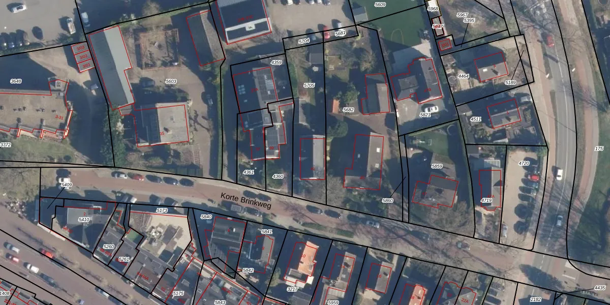 Het perceel waarop Korte Brinkweg 41 staat heeft een oppervlakte van 590 m². Dit is een groot perceel. De perceeloppervlakte wordt geregistreerd door het Kadaster. Gedetailleerde informatie over de maten van dit perceel kunt u vinden in het rapport Kadastrale kaart met maatvoering van Korte Brinkweg 41.