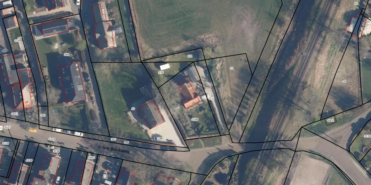 Het perceel waarop Korte Brinkweg 65 staat heeft een oppervlakte van 770 m². Dit is een groot perceel. De perceeloppervlakte wordt geregistreerd door het Kadaster. Gedetailleerde informatie over de maten van dit perceel kunt u vinden in het rapport Kadastrale kaart met maatvoering van Korte Brinkweg 65.