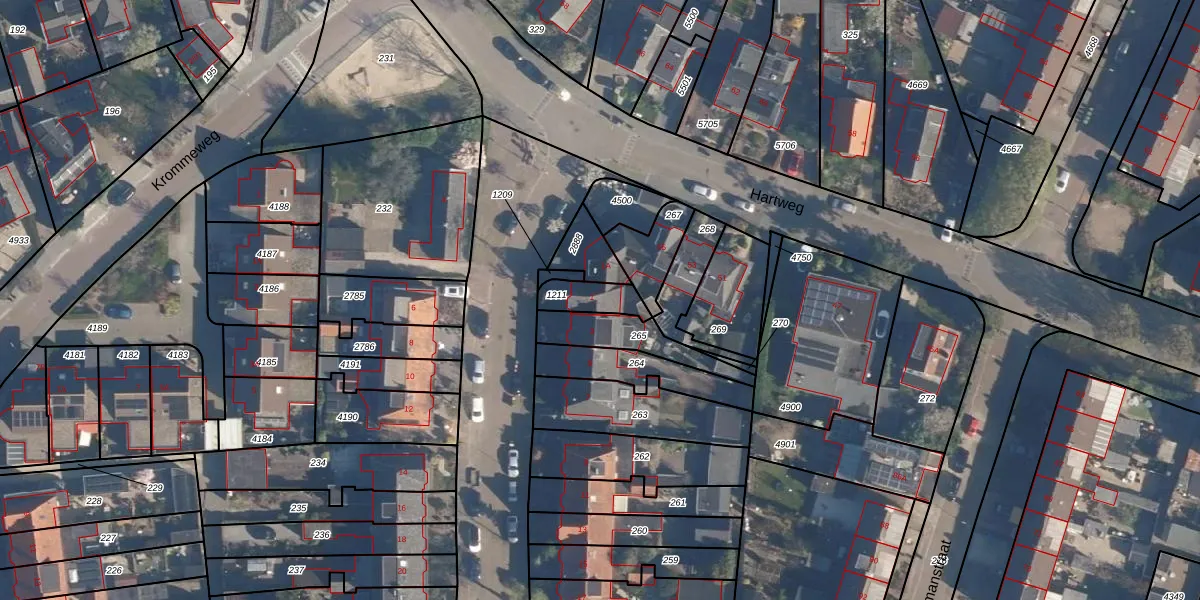 Het perceel waarop Korte Hartweg 1 staat heeft een oppervlakte van 89 m². Dit is een klein perceel. De perceeloppervlakte wordt geregistreerd door het Kadaster. Gedetailleerde informatie over de maten van dit perceel kunt u vinden in het rapport Kadastrale kaart met maatvoering van Korte Hartweg 1.