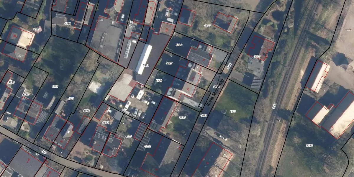 Het perceel waarop Korte Melmweg 15 staat heeft een oppervlakte van 404 m². Dit is een groot perceel. De perceeloppervlakte wordt geregistreerd door het Kadaster. Gedetailleerde informatie over de maten van dit perceel kunt u vinden in het rapport Kadastrale kaart met maatvoering van Korte Melmweg 15.