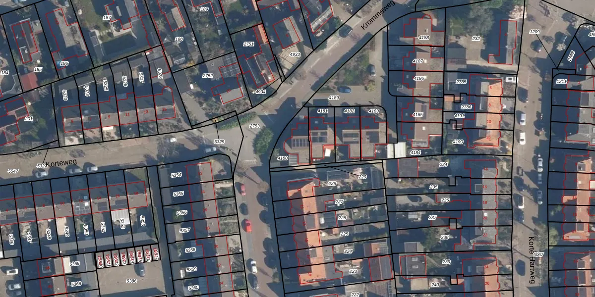 Het perceel waarop Krommeweg 7-B staat heeft een oppervlakte van 185 m². Dit is een middelgroot perceel. De perceeloppervlakte wordt geregistreerd door het Kadaster. Gedetailleerde informatie over de maten van dit perceel kunt u vinden in het rapport Kadastrale kaart met maatvoering van Krommeweg 7-B.