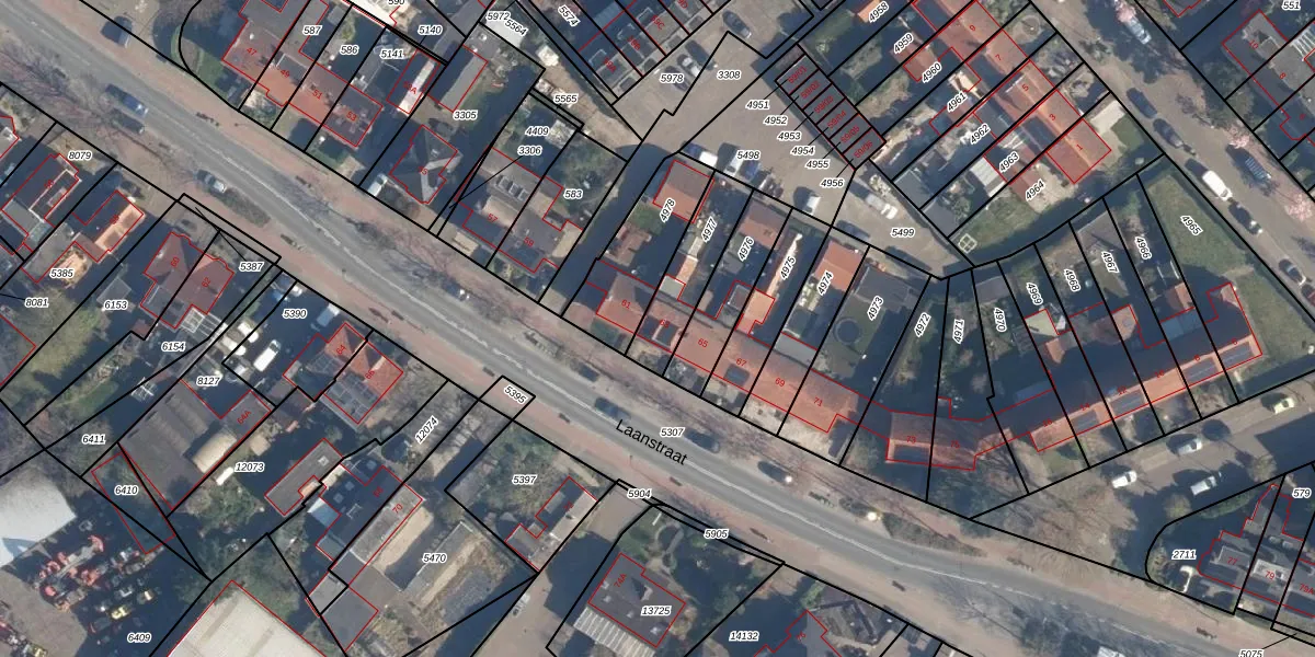 Laanstraat 63 is gelegen op kadastraal perceel SOE00K4977. Deze kadastrale aanduiding is uniek en wordt gebruikt door het Kadaster om eigendomsrechten en andere zakelijke rechten vast te leggen. Het perceel maakt onderdeel uit van de kadastrale gemeente Soest.