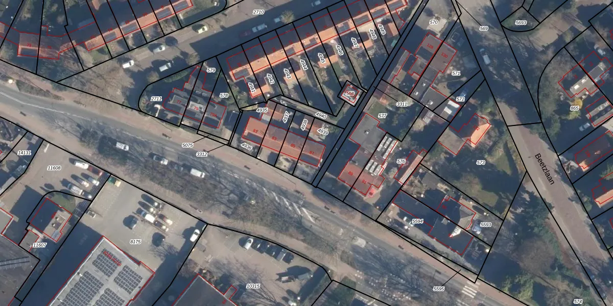 Gebruik de zoekbalk of klik op een perceel voor informatie over de adressen binnen dit perceel.