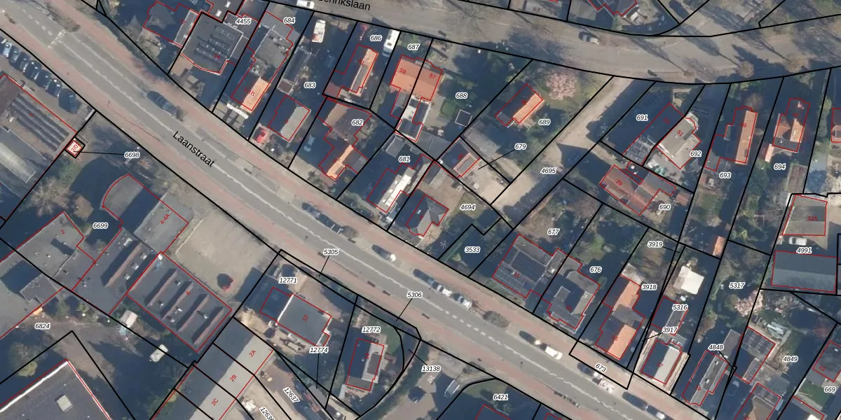 Laanstraat 9 is gelegen op kadastraal perceel SOE00K4694. Deze kadastrale aanduiding is uniek en wordt gebruikt door het Kadaster om eigendomsrechten en andere zakelijke rechten vast te leggen. Het perceel maakt onderdeel uit van de kadastrale gemeente Soest.