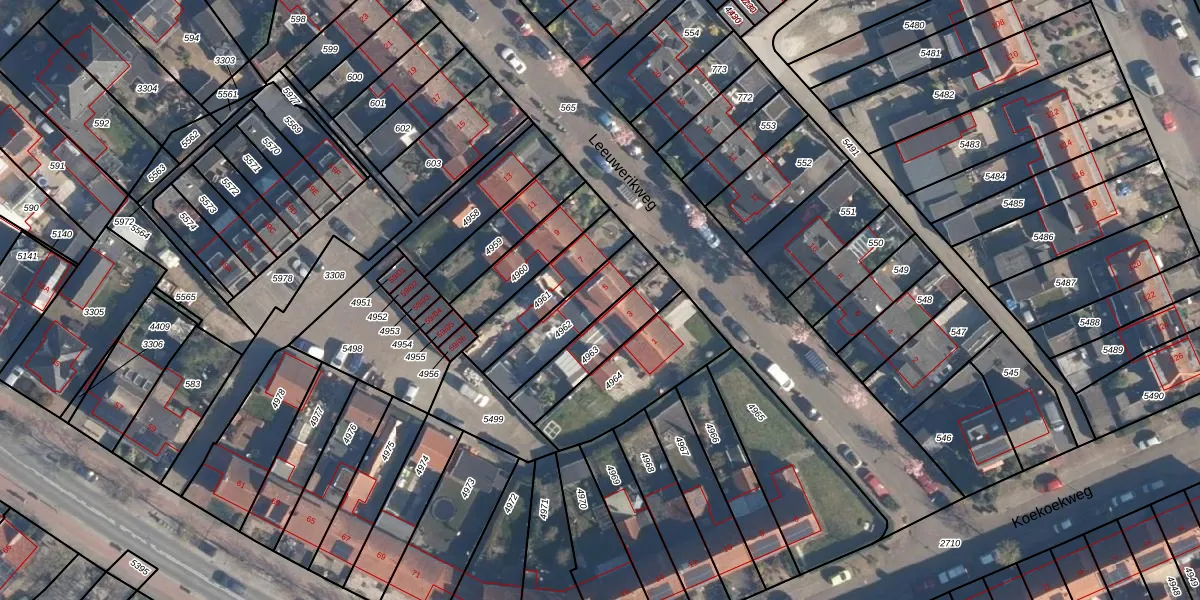 Leeuwerikweg 5 is gelegen op kadastraal perceel SOE00K4962. Deze kadastrale aanduiding is uniek en wordt gebruikt door het Kadaster om eigendomsrechten en andere zakelijke rechten vast te leggen. Het perceel maakt onderdeel uit van de kadastrale gemeente Soest.