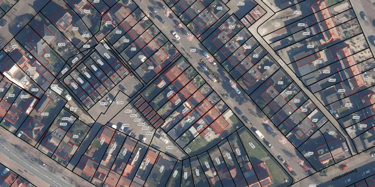 Leeuwerikweg 9 is gelegen op kadastraal perceel SOE00K4960. Deze kadastrale aanduiding is uniek en wordt gebruikt door het Kadaster om eigendomsrechten en andere zakelijke rechten vast te leggen. Het perceel maakt onderdeel uit van de kadastrale gemeente Soest.