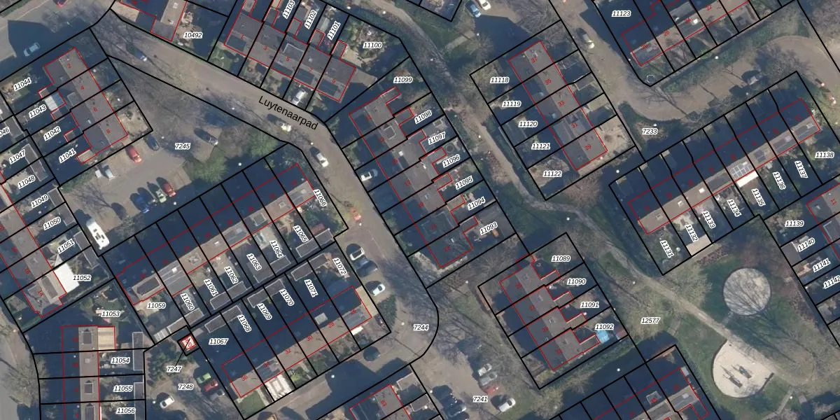 Luytenaarpad 19 is gelegen op kadastraal perceel SOE00G11095. Deze kadastrale aanduiding is uniek en wordt gebruikt door het Kadaster om eigendomsrechten en andere zakelijke rechten vast te leggen. Het perceel maakt onderdeel uit van de kadastrale gemeente Soest.