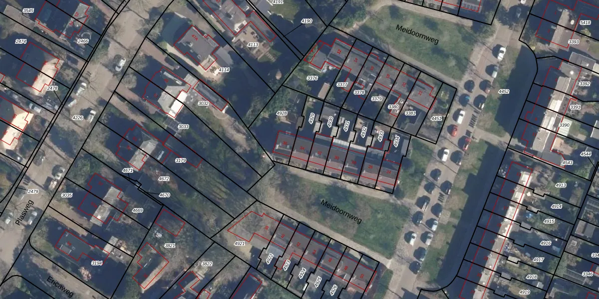 Meidoornweg 34 is gelegen op kadastraal perceel SOE00D4929. Deze kadastrale aanduiding is uniek en wordt gebruikt door het Kadaster om eigendomsrechten en andere zakelijke rechten vast te leggen. Het perceel maakt onderdeel uit van de kadastrale gemeente Soest.