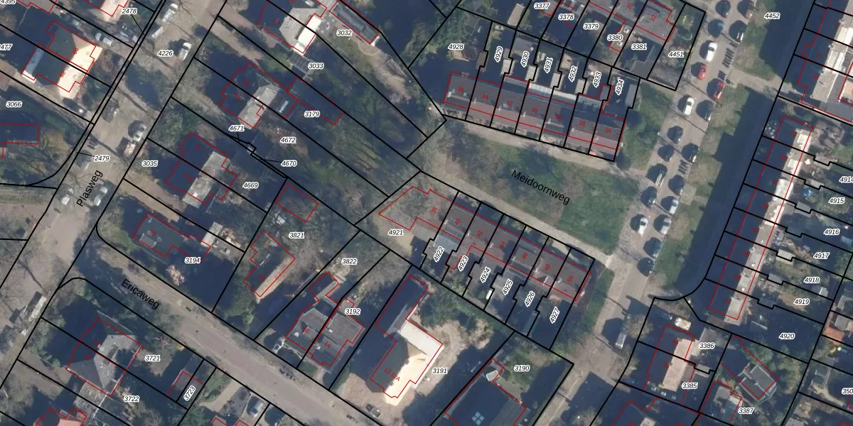 Gebruik de zoekbalk of klik op een perceel voor informatie over de adressen binnen dit perceel.