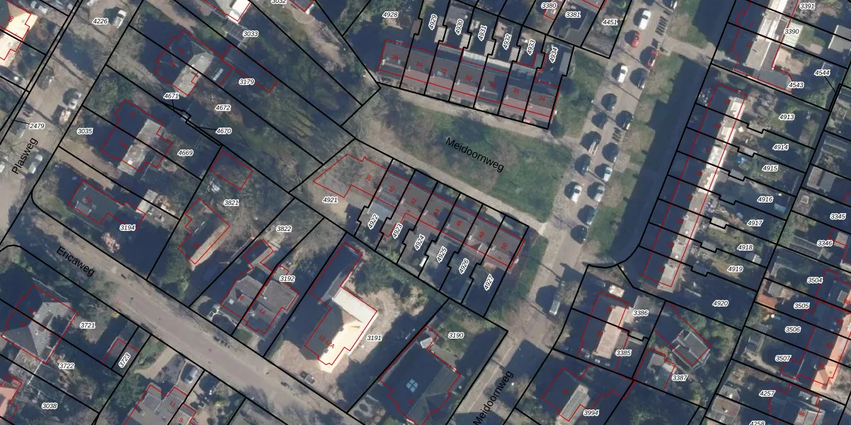 Meidoornweg 44 is gelegen op kadastraal perceel SOE00D4924. Deze kadastrale aanduiding is uniek en wordt gebruikt door het Kadaster om eigendomsrechten en andere zakelijke rechten vast te leggen. Het perceel maakt onderdeel uit van de kadastrale gemeente Soest.