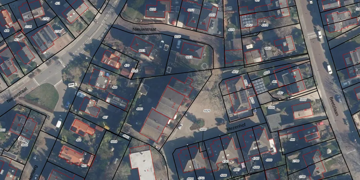 Het perceel waarop Mezenhof 15 staat heeft een oppervlakte van 1227 m². Dit is een zeer groot perceel. De perceeloppervlakte wordt geregistreerd door het Kadaster. Gedetailleerde informatie over de maten van dit perceel kunt u vinden in het rapport Kadastrale kaart met maatvoering van Mezenhof 15.