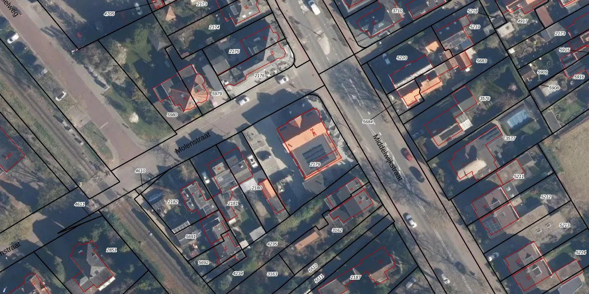 Middelwijkstraat 4 is gelegen op kadastraal perceel SOE00K2179. Deze kadastrale aanduiding is uniek en wordt gebruikt door het Kadaster om eigendomsrechten en andere zakelijke rechten vast te leggen. Het perceel maakt onderdeel uit van de kadastrale gemeente Soest.