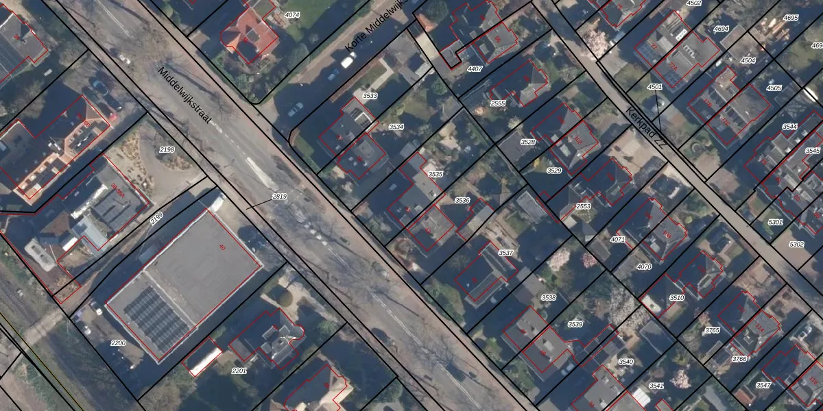 Middelwijkstraat 41 is gelegen op kadastraal perceel SOE00A3535. Deze kadastrale aanduiding is uniek en wordt gebruikt door het Kadaster om eigendomsrechten en andere zakelijke rechten vast te leggen. Het perceel maakt onderdeel uit van de kadastrale gemeente Soest.