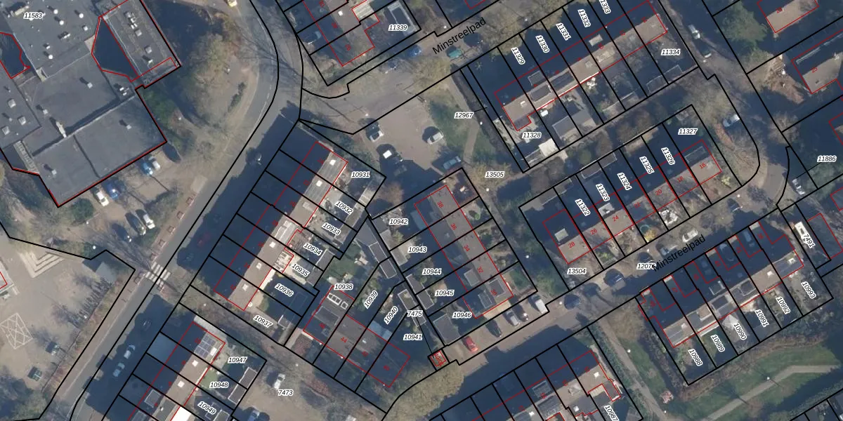 Minstreelpad 38 is gelegen op kadastraal perceel SOE00G10942. Deze kadastrale aanduiding is uniek en wordt gebruikt door het Kadaster om eigendomsrechten en andere zakelijke rechten vast te leggen. Het perceel maakt onderdeel uit van de kadastrale gemeente Soest.