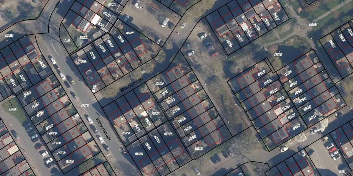Minstreelpad 65 is gelegen op kadastraal perceel SOE00G10967. Deze kadastrale aanduiding is uniek en wordt gebruikt door het Kadaster om eigendomsrechten en andere zakelijke rechten vast te leggen. Het perceel maakt onderdeel uit van de kadastrale gemeente Soest.