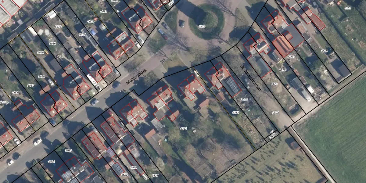 Het perceel waarop Molenstraat 115 staat heeft een oppervlakte van 3051 m². Dit is een zeer groot perceel. De perceeloppervlakte wordt geregistreerd door het Kadaster. Gedetailleerde informatie over de maten van dit perceel kunt u vinden in het rapport Kadastrale kaart met maatvoering van Molenstraat 115.