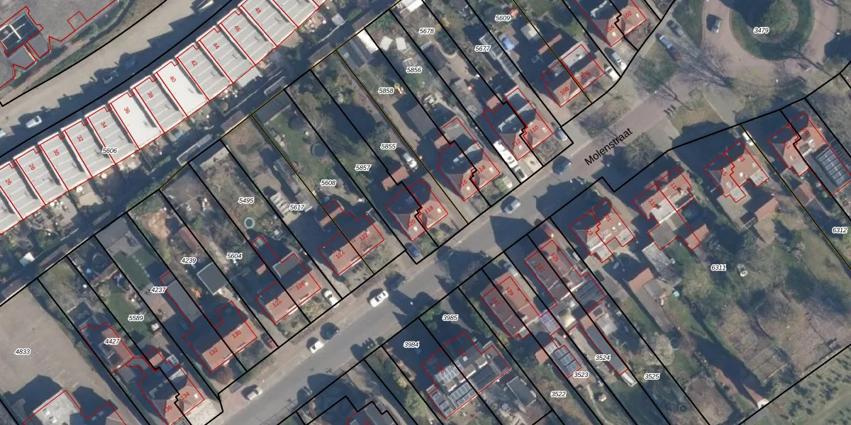 Het perceel waarop Molenstraat 118 staat heeft een oppervlakte van 397 m². Dit is een groot perceel. De perceeloppervlakte wordt geregistreerd door het Kadaster. Gedetailleerde informatie over de maten van dit perceel kunt u vinden in het rapport Kadastrale kaart met maatvoering van Molenstraat 118.