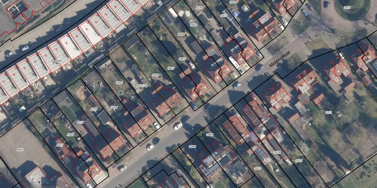 Molenstraat 120 is gelegen op kadastraal perceel SOE00K5857. Deze kadastrale aanduiding is uniek en wordt gebruikt door het Kadaster om eigendomsrechten en andere zakelijke rechten vast te leggen. Het perceel maakt onderdeel uit van de kadastrale gemeente Soest.
