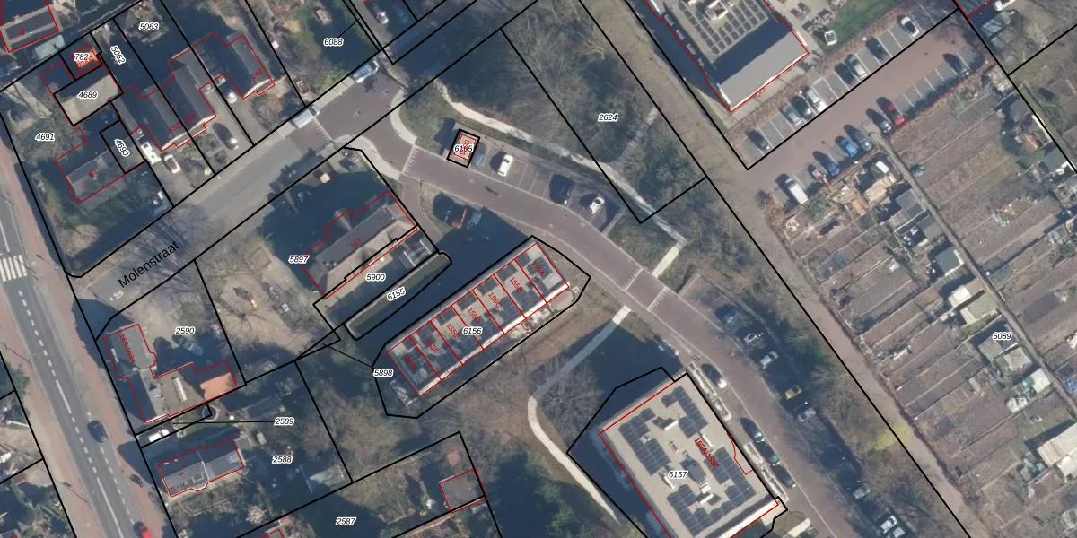 Het perceel waarop Molenstraat 155-A staat heeft een oppervlakte van 609 m². Dit is een groot perceel. De perceeloppervlakte wordt geregistreerd door het Kadaster. Gedetailleerde informatie over de maten van dit perceel kunt u vinden in het rapport Kadastrale kaart met maatvoering van Molenstraat 155-A.