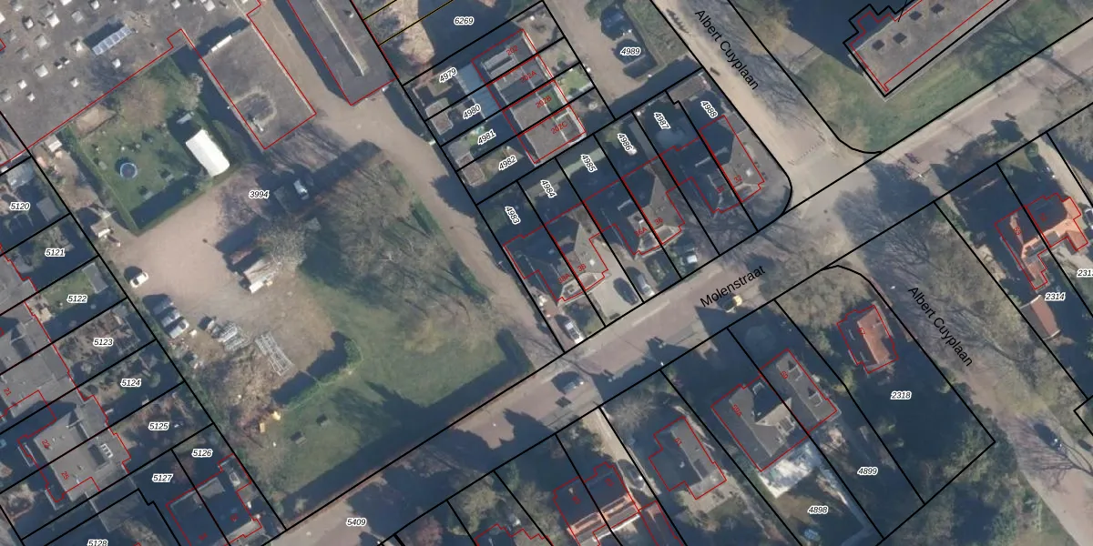 Molenstraat 38-A is gelegen op kadastraal perceel SOE00K4983. Deze kadastrale aanduiding is uniek en wordt gebruikt door het Kadaster om eigendomsrechten en andere zakelijke rechten vast te leggen. Het perceel maakt onderdeel uit van de kadastrale gemeente Soest.