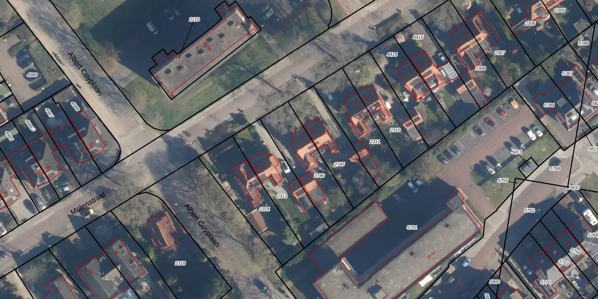 Gebruik de zoekbalk of klik op een perceel voor informatie over de adressen binnen dit perceel.