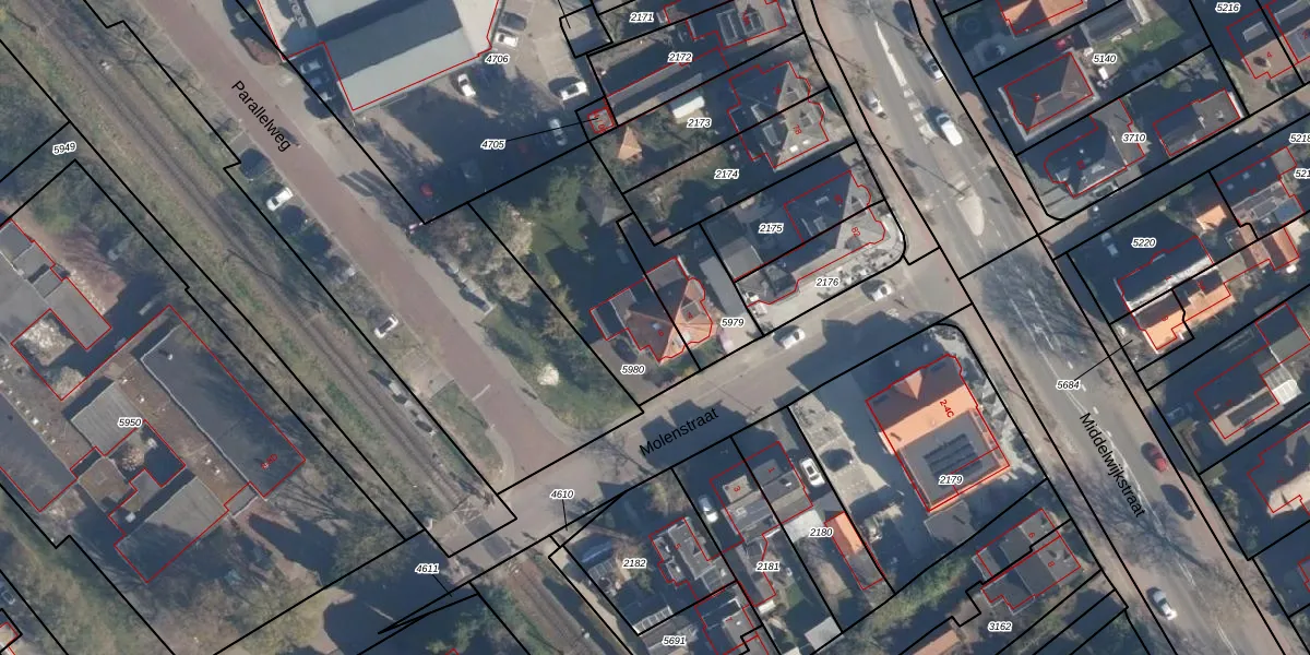 Gebruik de zoekbalk of klik op een perceel voor informatie over de adressen binnen dit perceel.