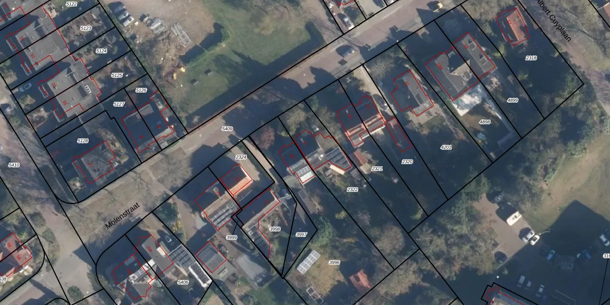 Gebruik de zoekbalk of klik op een perceel voor informatie over de adressen binnen dit perceel.