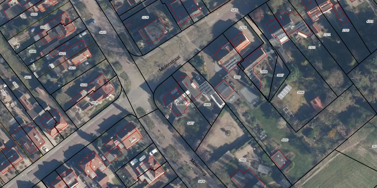 Molenstraat 75-A is gelegen op kadastraal perceel SOE00K5406. Deze kadastrale aanduiding is uniek en wordt gebruikt door het Kadaster om eigendomsrechten en andere zakelijke rechten vast te leggen. Het perceel maakt onderdeel uit van de kadastrale gemeente Soest.