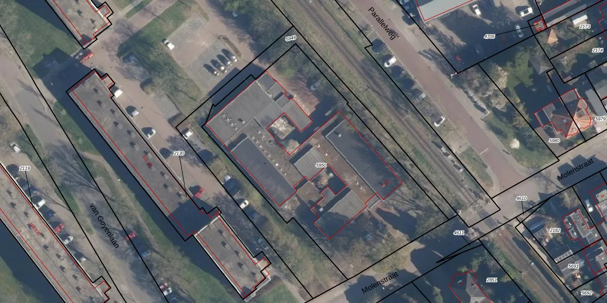 Het perceel waarop Molenstraat 8-B staat heeft een oppervlakte van 3008 m². Dit is een zeer groot perceel. De perceeloppervlakte wordt geregistreerd door het Kadaster. Gedetailleerde informatie over de maten van dit perceel kunt u vinden in het rapport Kadastrale kaart met maatvoering van Molenstraat 8-B.