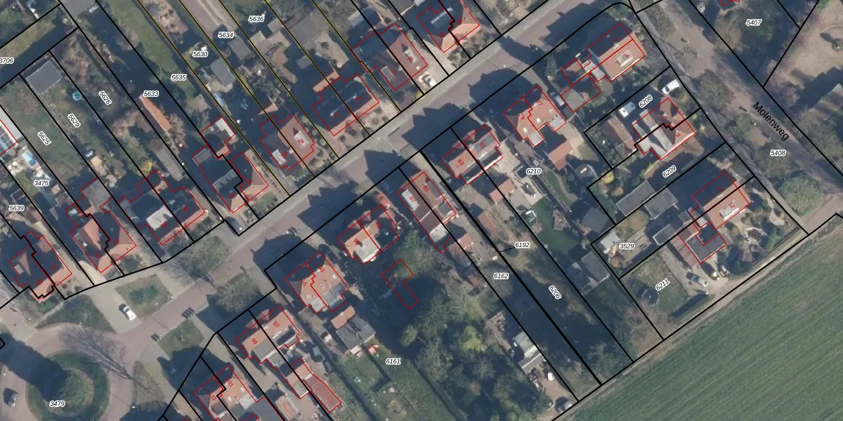 Het perceel waarop Molenstraat 87 staat heeft een oppervlakte van 3880 m². Dit is een zeer groot perceel. De perceeloppervlakte wordt geregistreerd door het Kadaster. Gedetailleerde informatie over de maten van dit perceel kunt u vinden in het rapport Kadastrale kaart met maatvoering van Molenstraat 87.