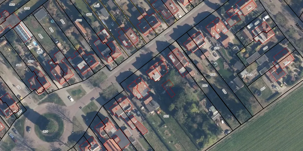 Het perceel waarop Molenstraat 91 staat heeft een oppervlakte van 3880 m². Dit is een zeer groot perceel. De perceeloppervlakte wordt geregistreerd door het Kadaster. Gedetailleerde informatie over de maten van dit perceel kunt u vinden in het rapport Kadastrale kaart met maatvoering van Molenstraat 91.