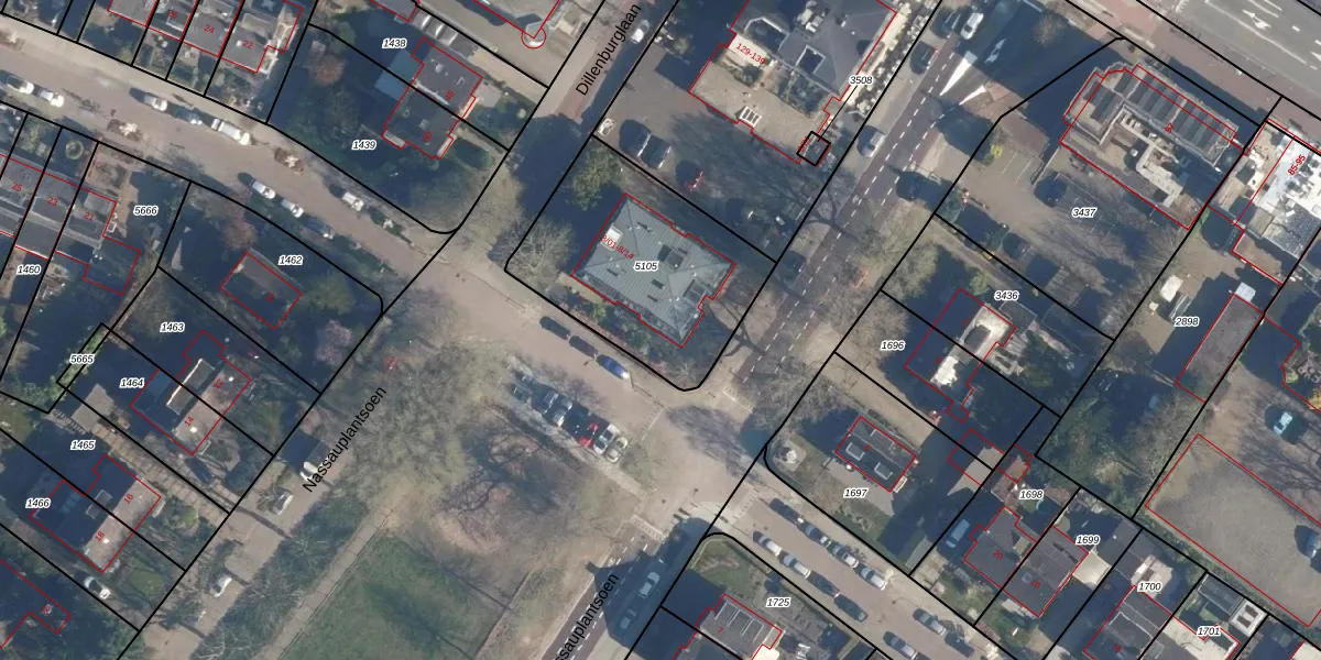 Het perceel waarop Nassauplantsoen 8-13 staat heeft een oppervlakte van 838 m². Dit is een groot perceel. De perceeloppervlakte wordt geregistreerd door het Kadaster. Gedetailleerde informatie over de maten van dit perceel kunt u vinden in het rapport Kadastrale kaart met maatvoering van Nassauplantsoen 8-13.